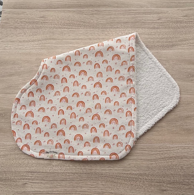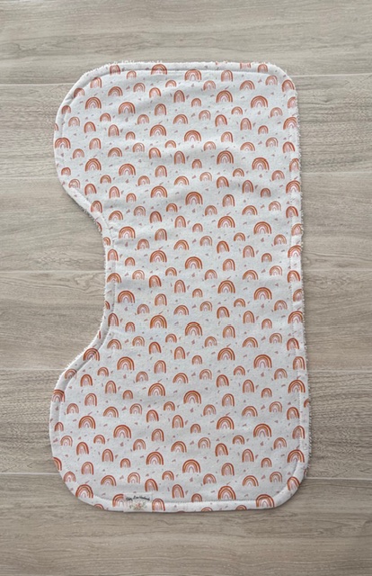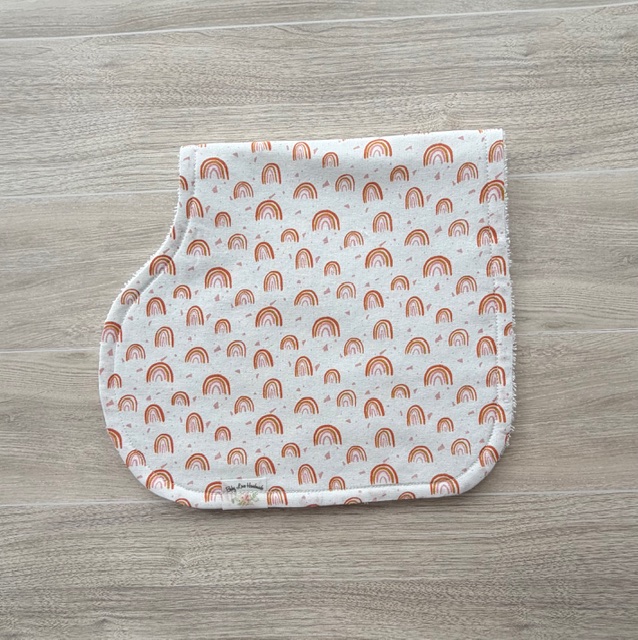 These burp cloths are a must have for your little ones. They are contoured for over the shoulder which makes it comfy for mom and baby. They are approx 16"X 9" and the front is 100% cotton and the back is 100% cotton terrycloth. These burp cloths are a really great help for moms. Caregivers assumes all responsibility for use of any Baby Love Finds Items.