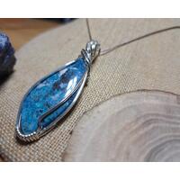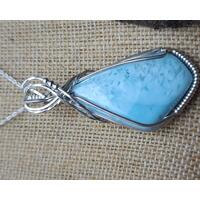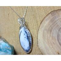 This beautiful one-of-a-kind freeform teardrop Burrow Creek Purple agate has been hand-wire-wrapped in solid 20ga Sterling Silver. The stone itself has been shaped and polished to enhance the natural features and aesthetics of the stone's natural features Burrow Creek purple agate is a very tightly bunched purple moss agate that is so tight it is opaque like a jasper but is not a jasper at all. Burrow Creek Agate is a very unique stone that has a wrinkled moss appearance that comes in various shaped veins with many colors present. Burrow Creek agate has been attributed to stimulating creativity and flowing thoughts.
