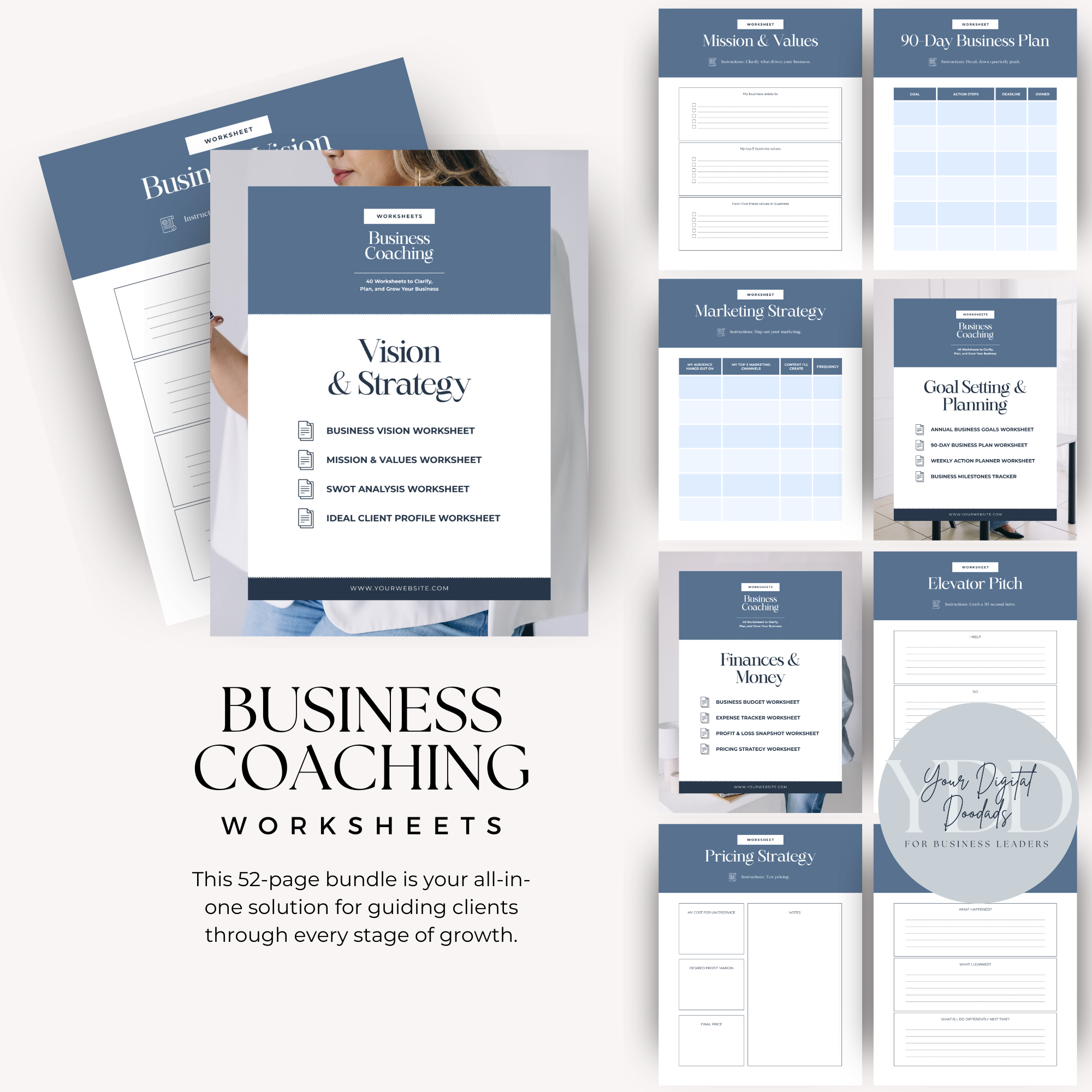 Ready to take your business coaching practice to the next level? This comprehensive 52-page Business Coaching Worksheets bundle is your all-in-one solution for guiding clients through every stage of growth. Thoughtfully organized into 10 powerful sections, these printable worksheets help small business owners and coaches clarify their vision, set actionable goals, and create lasting results.