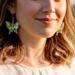The light catches these wings, creating a dazzling display of color and texture. Suspended from gold-tone ear wires, these lightweight earrings are perfect for adding a touch of whimsical charm and vibrant personality to any outfit. Choose your favorite hue or collect them all to match every mood and occasion! These sparkling earrings are made with an open back butterfly bezel and filled with various dichroic colors or real abalone and clear resin.