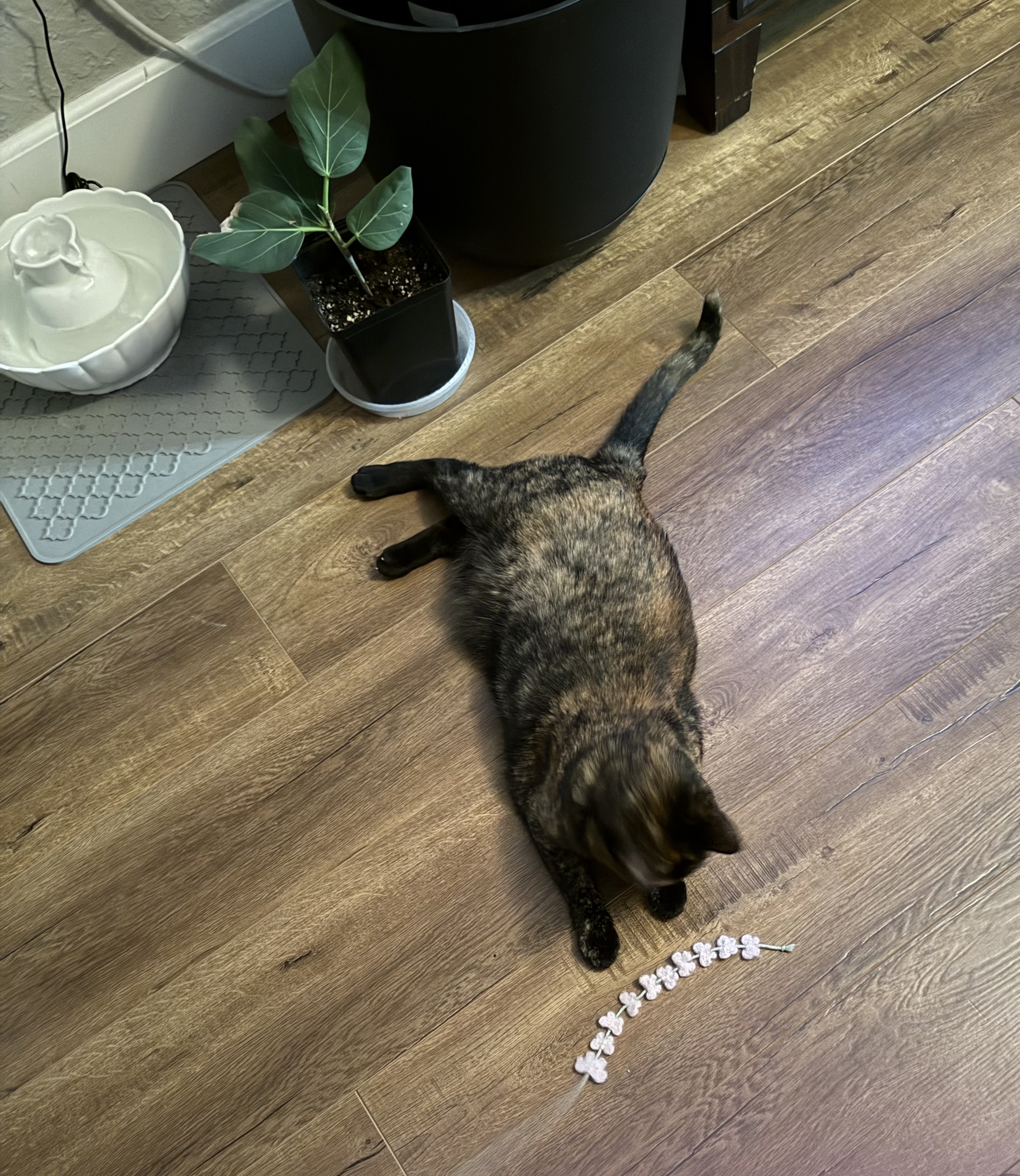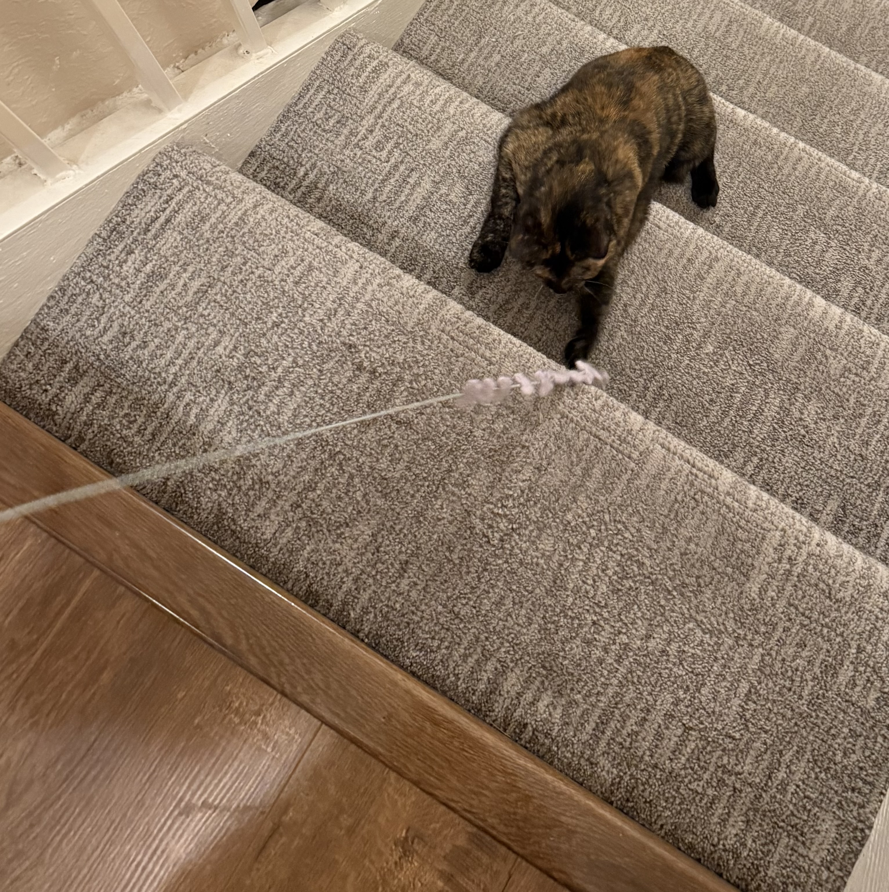 *Spend dedicated time playing with your cat using toys that mimic prey, like wand toys with feathers.