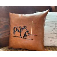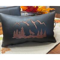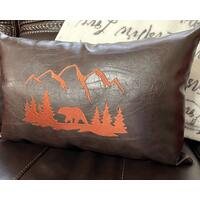 This cabin throw pillow is a classic lodge decoration. It is available in many sizes from a small lumbar pillow to a 12x12 lodge cushion and full 16x16 or 18x18 cabin throw pillows. It's the perfect accent to any living room sofa, bedroom, family room or game room. Enhance your mountain lodge décor with a stunning faux leather pillow.