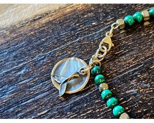 Malachite & Brass Bracelet with Capriz Shell and Bronze Whale...
