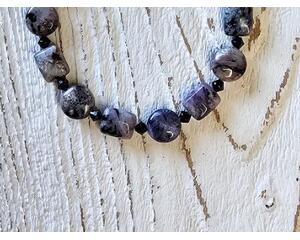 Elegant Charoite and Black Spinel Bracelet with Sterling Silv...