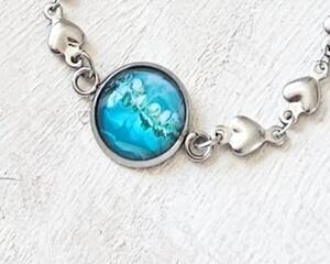 Original Handmade Fluid Art in Aqua & Gold Dolphin Bracelet –...