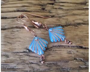 Vintage-Inspired Milky-Blue and Copper Czech Glass Earrings