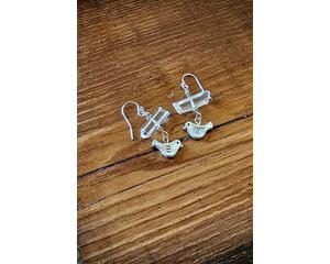 Sterling Silver Earrings with White Czech Glass Birds and Qua...