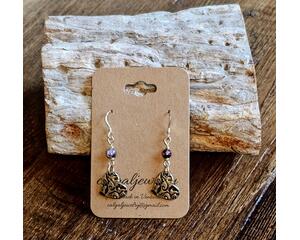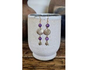 Bronze Sea Dollar Earrings with Dogtooth Amethyst - Ocean-Ins...