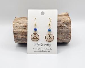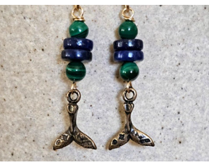 Whale's Tail Bronze Earrings with Lapis and Malachite Beads