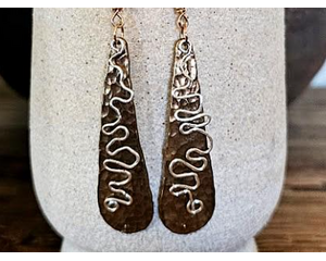 Funky Bronze Teardrop Earrings with Sterling Silver & Flower-...