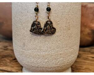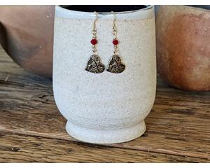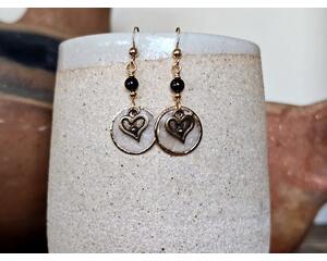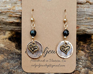 Layered Capiz Shell & Bronze Heart Dangle Earrings with Serap...