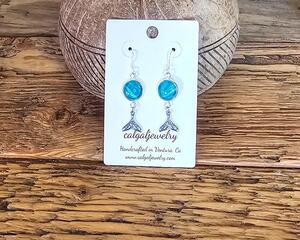 Original Handmade Fluid Art -Aqua Acrylic Pour Earrings w/Sta...
