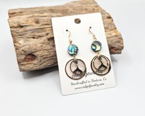 Abalone & Capiz Shell Earrings with Bronze Whale Tail Charms