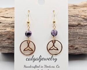 Whale Tail Earrings – Stainless Steel, Capiz Shell & Amethyst