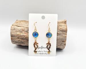 Blue and Gold Acrylic Pour Earrings with Stainless Steek Seah...