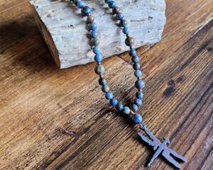 Earthy Sunset Dumortierite Necklace with Dragonfly Pendant an...