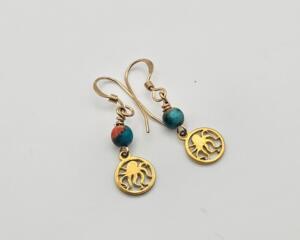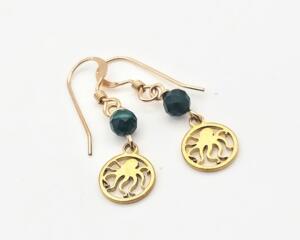 Dainty Gold Stainless Steel Octopus & Ocean Jade Earrings