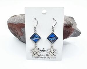 Ocean Blues & Sandy Gold Turtle Earrings – Stainless Steel, L...