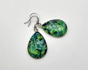 Tropics-Inspired Fluid Art Green Teardrop Earrings, Lightweig...