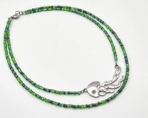 Vibrant Green Seed Bead Double Strand Necklace with Stainless...