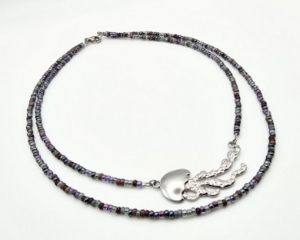 Handmade Plum Seed Bead Double Strand Necklace with Stainless...