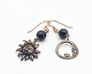 Bronze Sun and Moon Earrings with Seraphinite – Mismatched Ce...