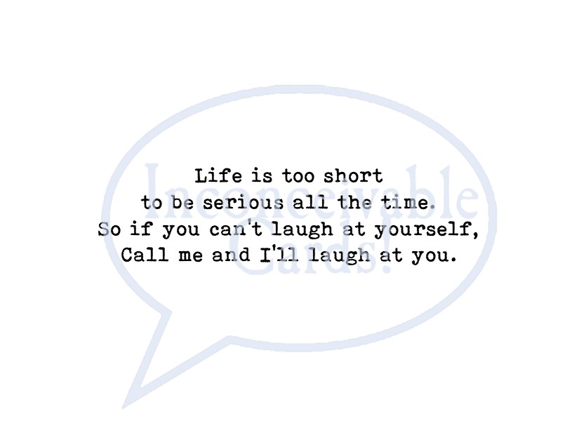 Front Text: "Life is too short to be serious all the time. So if you can’t laugh at yourself, Call me and I’ll laugh at you."
