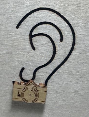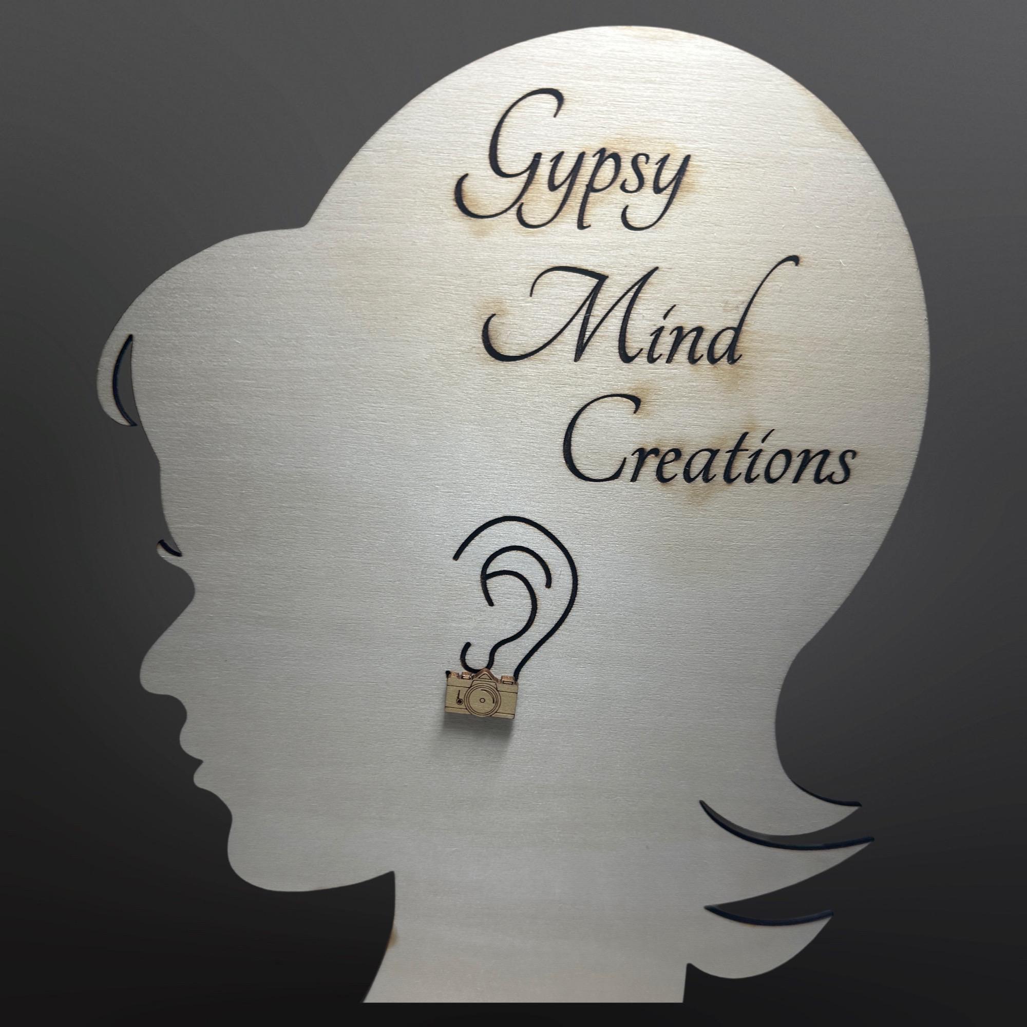 These are a pair of laser cut lightweight camera stud wood earrings. They are made from 1/8 in thick medium poplar hardwood. All metal components are stainless steel, hypoallergenic posts. They are approx. .5" in long. Butterfly backs included.