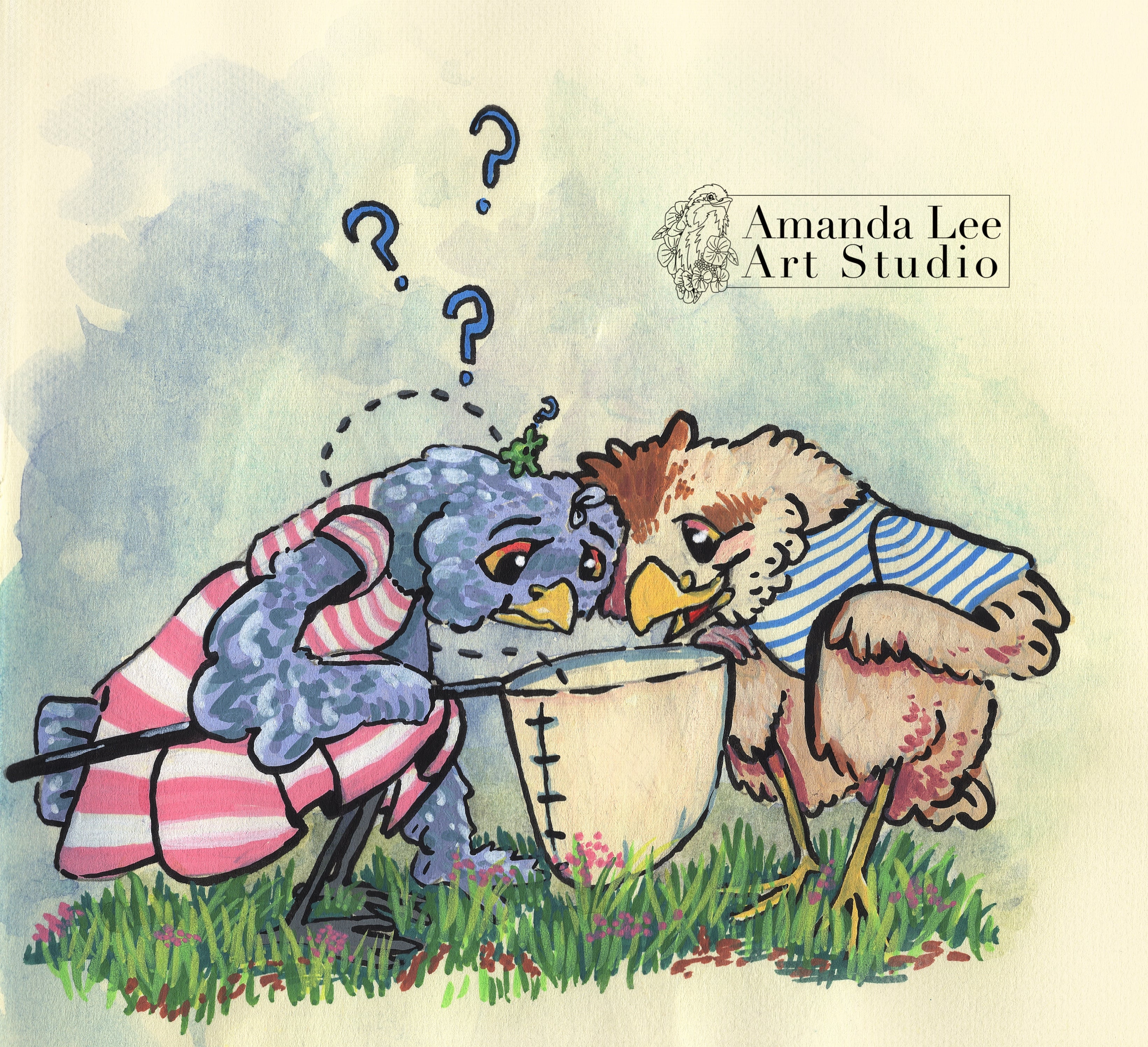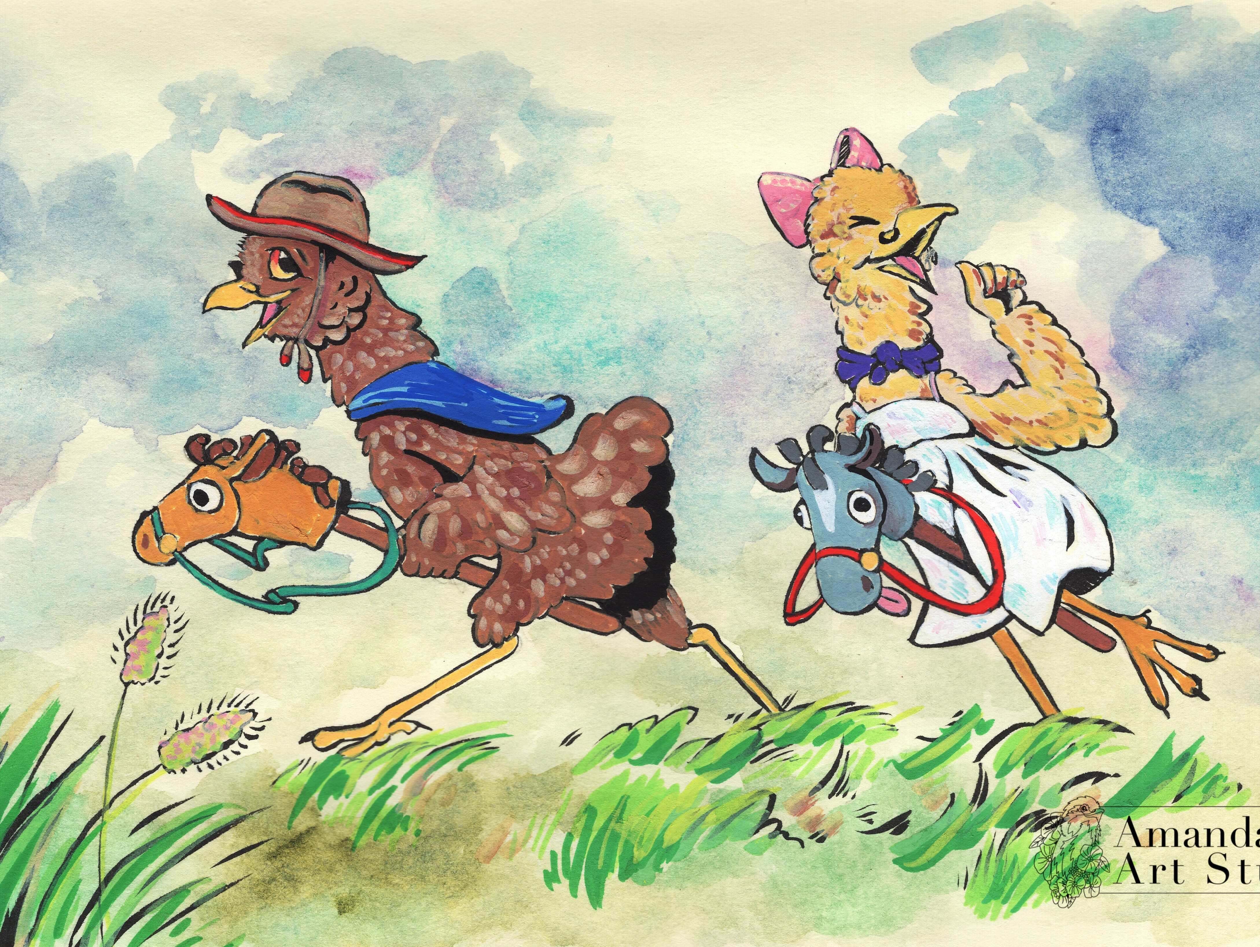 If you ever wanted some candid photos recreated into a watercolor painting, but as chickens, you are in the right place.