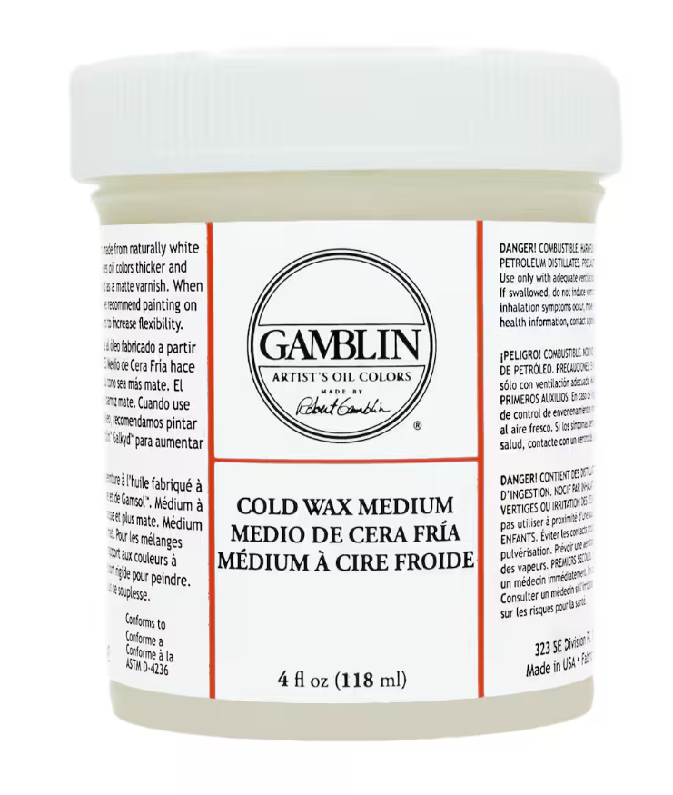 Once it is all dry, I take an acrylic matte medium and apply it to the back of the painting and the front of the canvas. Then I press the sticky sides together. By doing it quickly, I can get them to stick well. I'll place the canvas under a few books to weigh it down and make sure the seal is good. Once that is dry, I will check the edges and cut off the excess paper. The last step is to apply a thin layer of the Gamblin's cold wax to the painting itself and buff it in. This ensures I get a water resistant layer onto the paper.