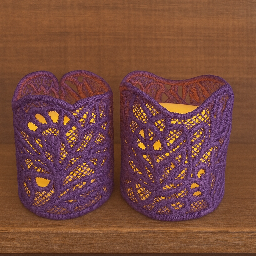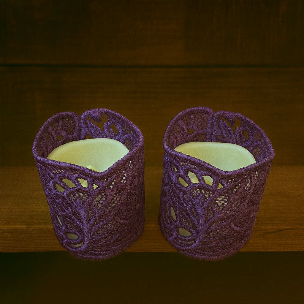Bring cozy charm and soft glow to your home with these embroidered flameless candle wraps, made with purple embroidery thread— the perfect touch of warmth without the worry of open flames.