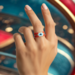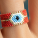 Add a pop of bold color and protection to your look with the Candy Apple Evil Eye Ring. Handwoven using rich red, sky blue, and gold seed beads, this ring combines playful energy with symbolic strength. The evil eye motif—believed to ward off negativity—is centered within a striking red band that’s perfect for everyday wear or a statement accent.
