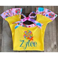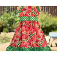 This cute boutique lollipop candy birthday girl dress would be perfect to wear for your little girl's candy theme birthday party. Dress is halter style with a cute candy print and lollipop applique on skirt panel. Your little girl will love showing off her birthday dress on her special day.