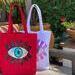 Canvas Beach Tote Bags, Eco-Friendly Sustainable Cotton Bags, Sequins Evil Eye, Gusset Bags Flat Bottom, Heavy Canvas Bag, Gift For Her