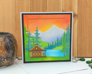 Sunset Serenity Cabin Card – Layered Nature Scene