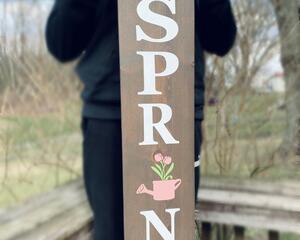 Three Foot Hello Spring Wood Sign | Watering Can Sign | Easte...