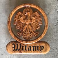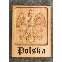 I have acquired a discontinued supply of beautiful imported Baltic birch solid wood panels. They make for a great size polish eagle carving platform. These are just the right size and I can pass the savings on to you. These eagles are carved in the Baltic birch, as well as the text. The finished pieces are 9.5 x 11". Just the right size for hanging on the wall. Available in natural, golden oak, and honey maple stain with the eagle in a square recess or a dish format. You also have your choice of text - script, lettered, or the much favored Old World. Each piece is hand finished with painted text and 4 coats of semi gloss polyurethane with a saw tooth hanger installed. It takes 1-2 weeks to get one ready to ship with your choices, if I don't happen to have one in stock. Please specify either square recessed or dish cut. When this wood is gone - that's it until something else comes along. FREE SHIPPING to the lower 48 on this one!!!