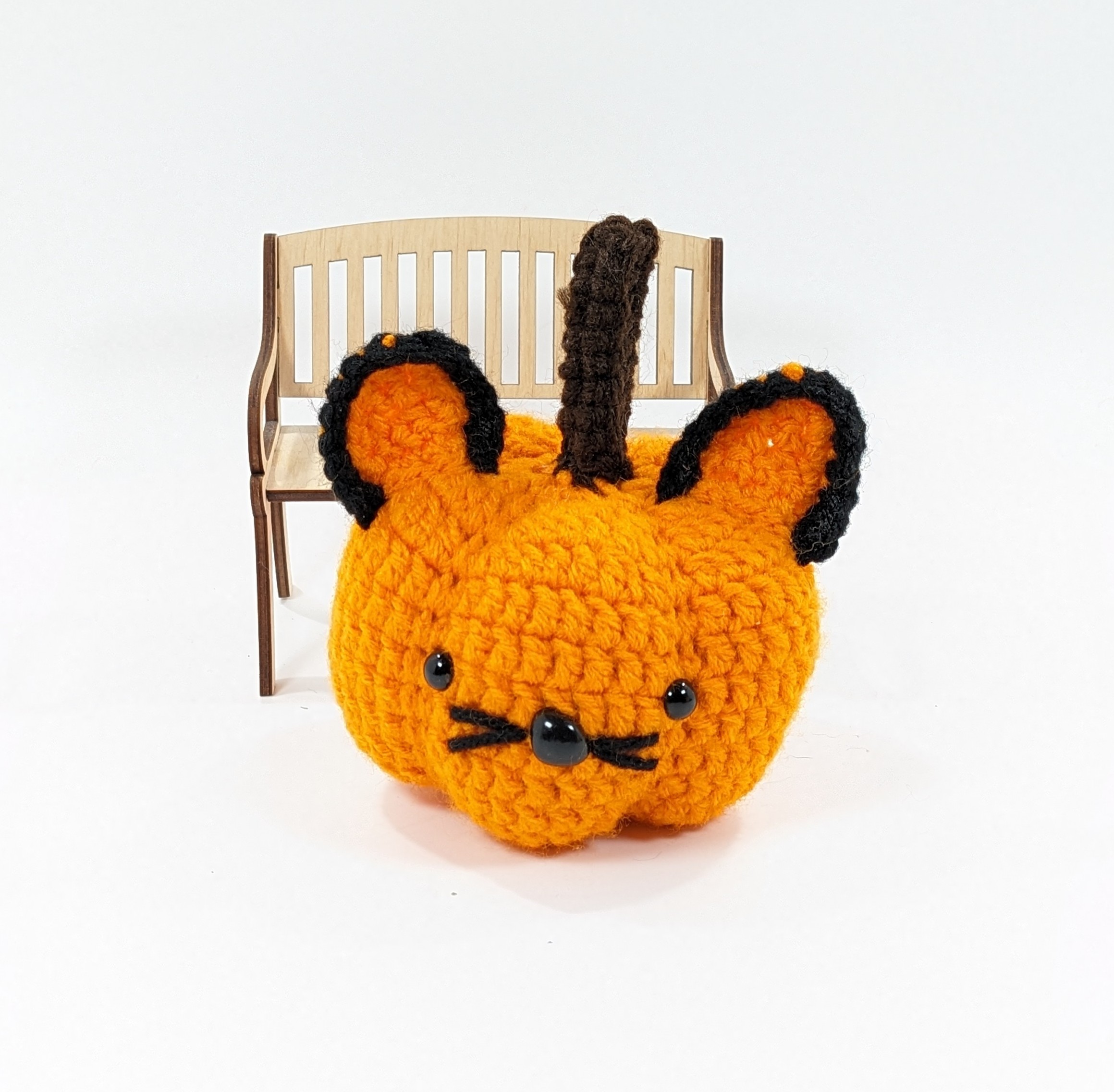 Also this Cat Pumpkin Halloween Decor is crochet with acrylic yarn and filled with fiberfill. This pumpkin has plastic safety eyes which are not recommended for children under 3.