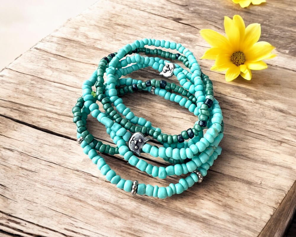 This bracelet set is an adorable stack of six bracelet for that cat lover in your life!