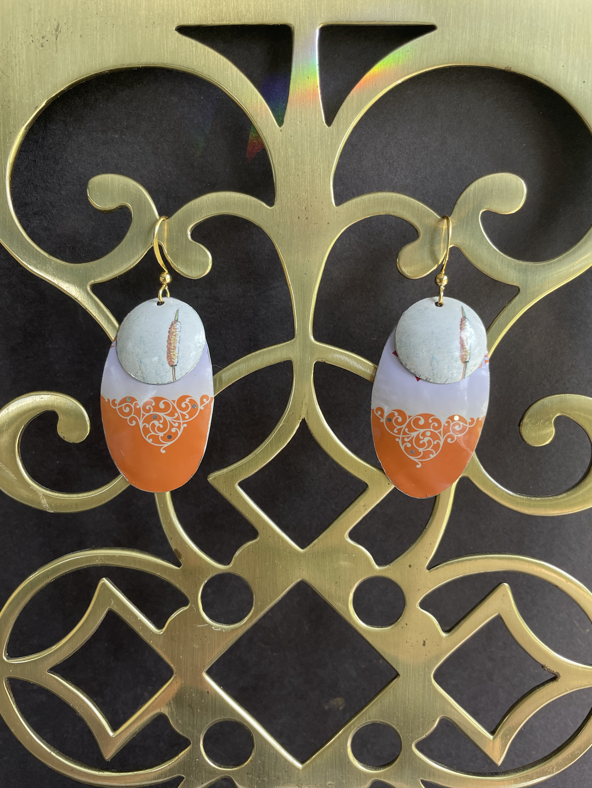Cattails and tea. A seasonal moment. The earring findings are gold-plated and have no nickel, and come with a rubber stopper so they won't fall out of your ears.