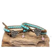 Two Sister Beaded Leather bracelet set for two very special sisters, Treasure each other.