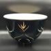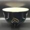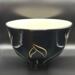 Wheel-Thrown ceramic bowl with black glossy outside adorned with sgraffito design. Lined with a durable white liner glaze on the interior. Food safe.