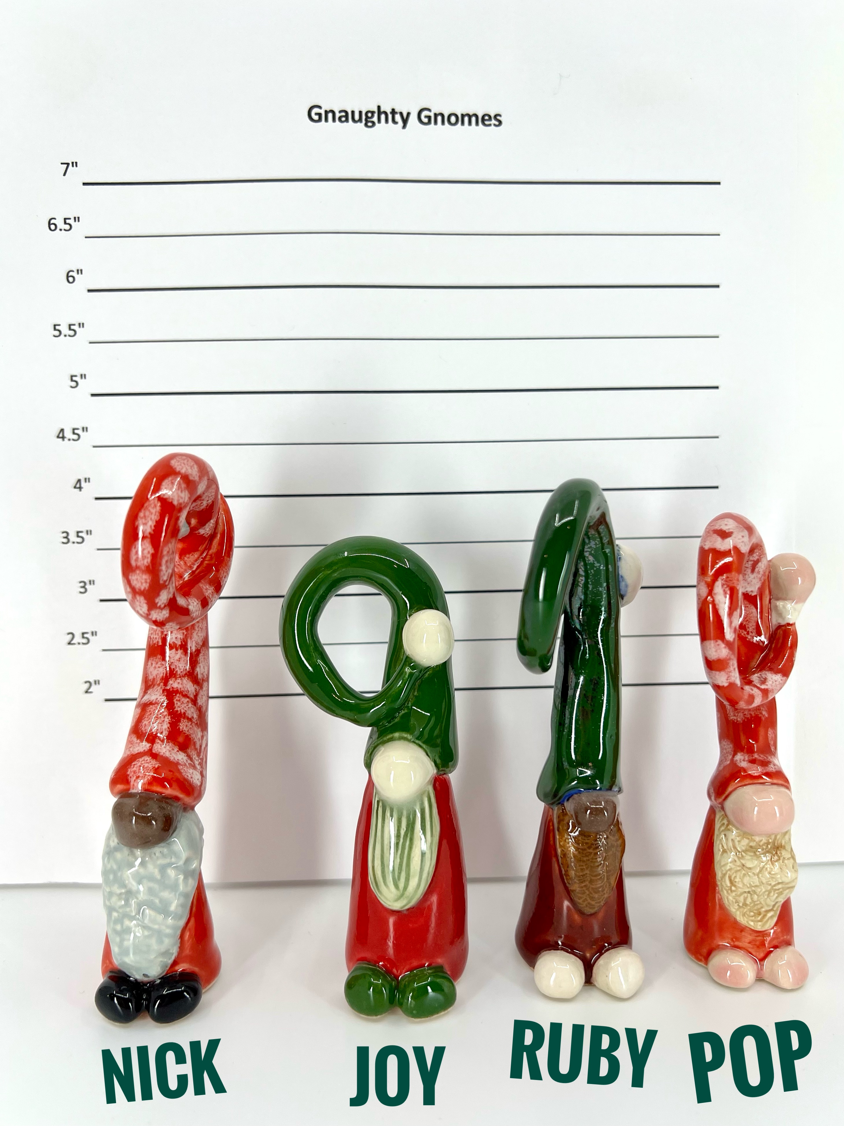 These little ceramic gnomes come pre-strung, so they’re ready to hang on your Christmas tree, but they’re just as cute nestled year-round into a potted plant or on a shelf. Their heights, measured in inches, vary as can be seen in the lineup photos. Perfect for adding a bit of whimsy to your decor or as a cheerful gift for gnome lovers!