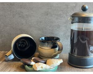 Since each piece is hand-thrown and glazed, each piece will be slightly different, but they all have that "made by hand" feel!