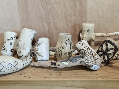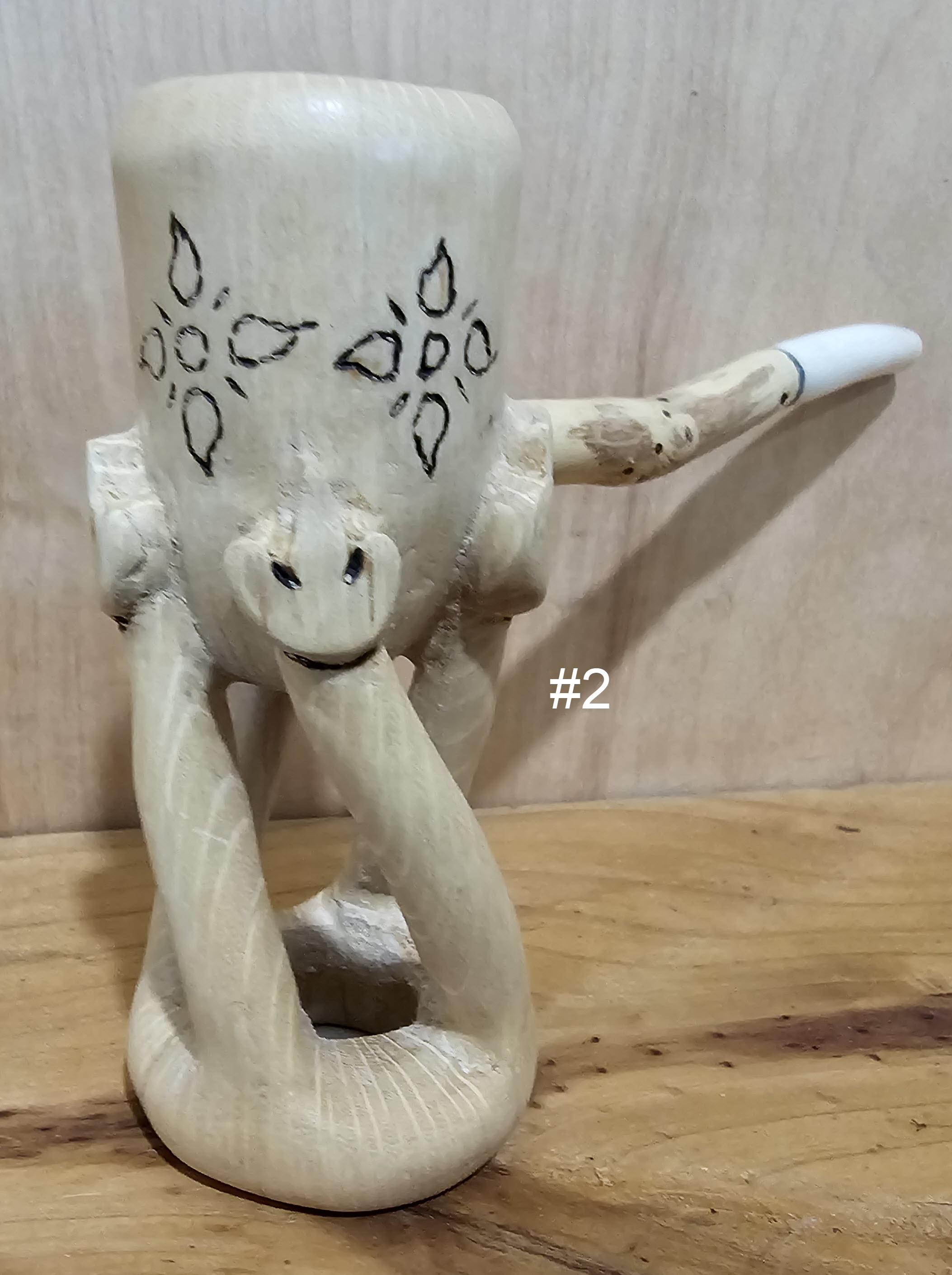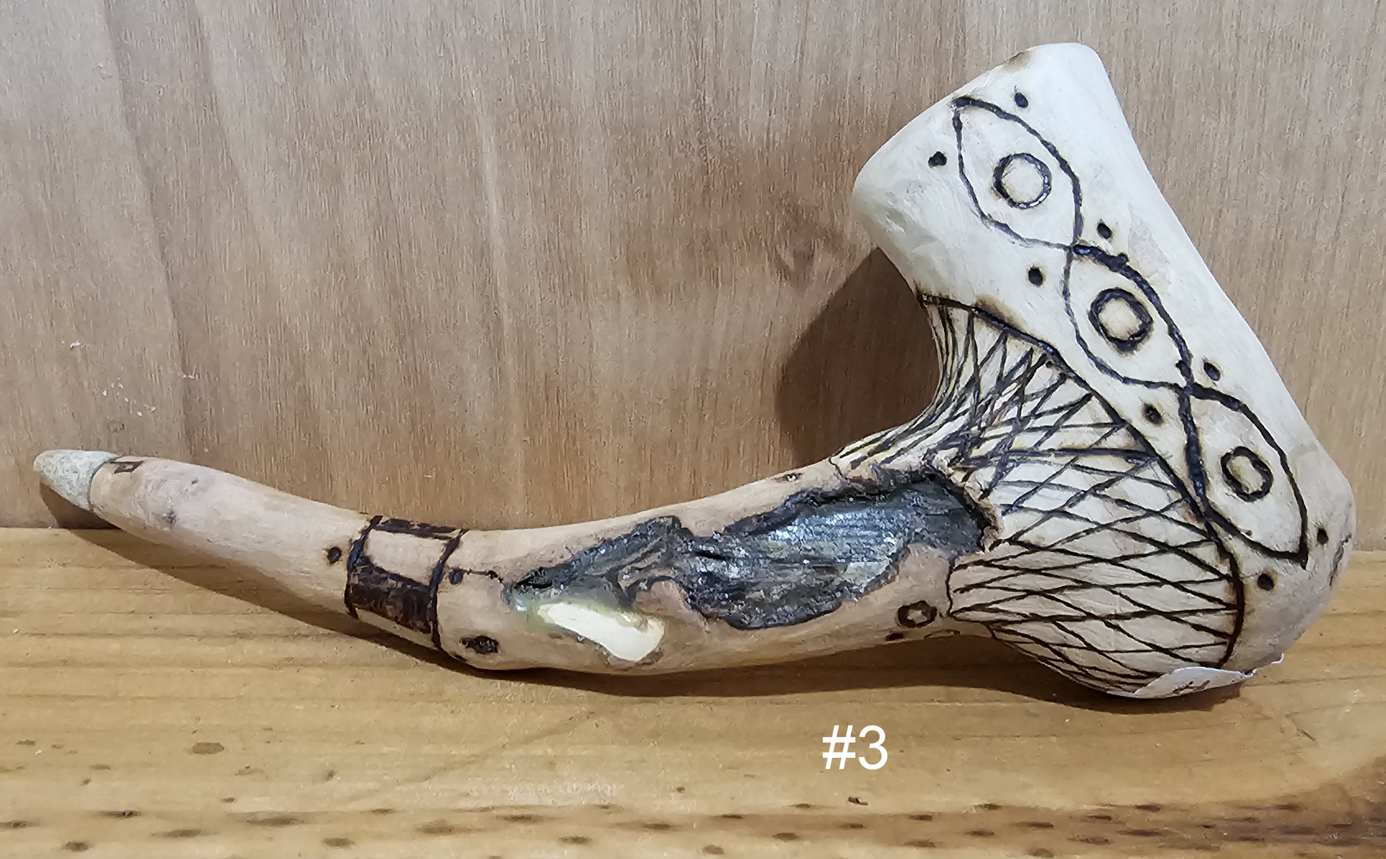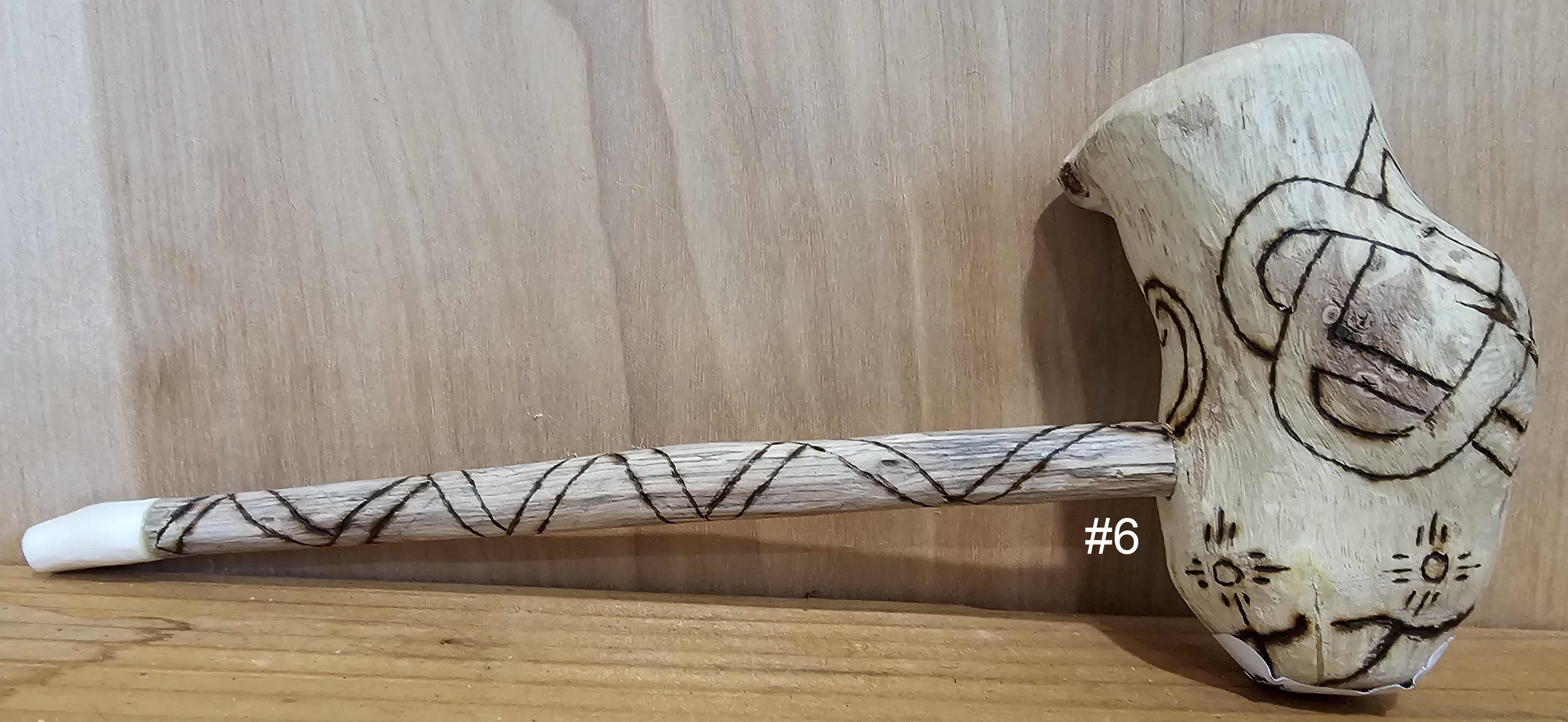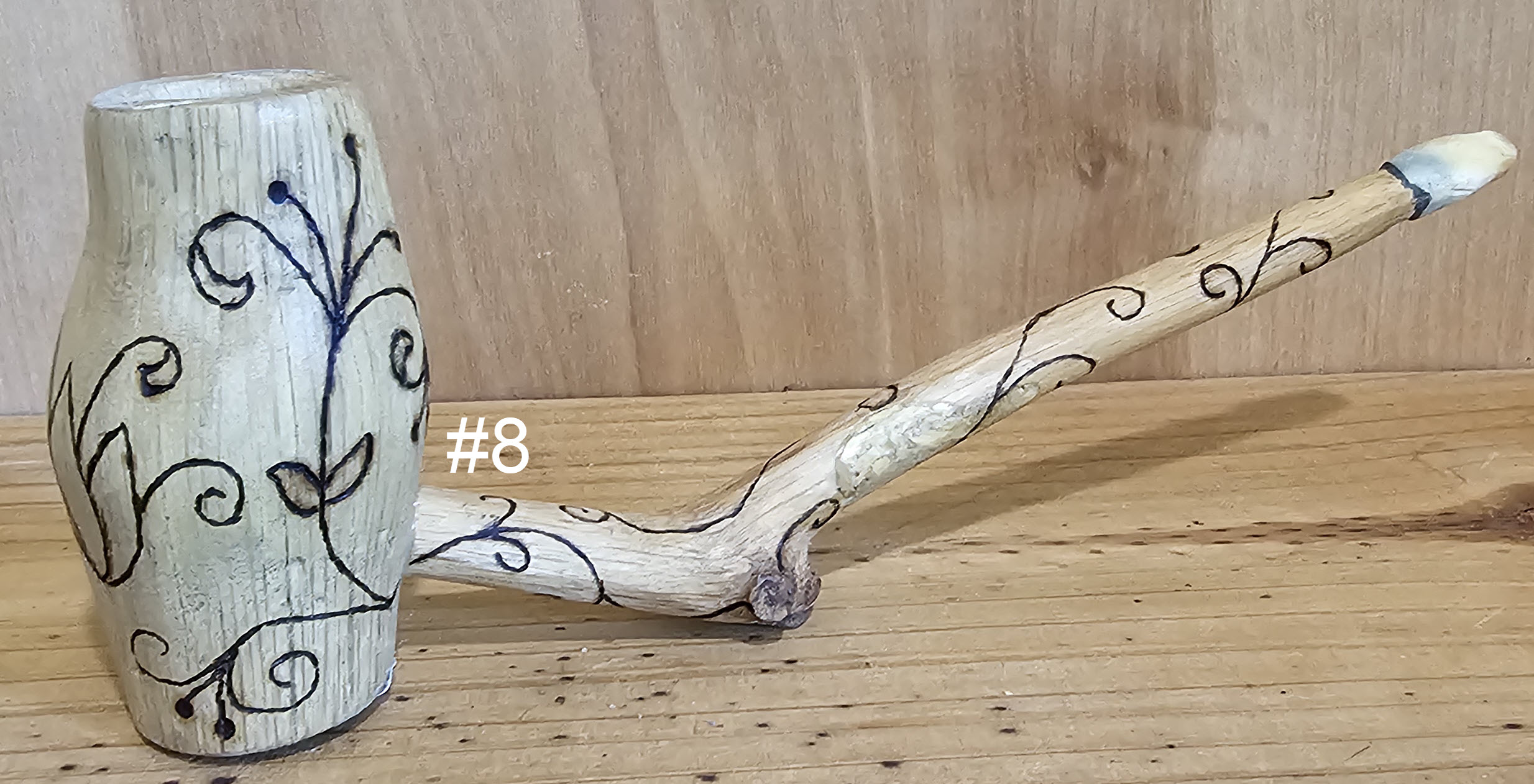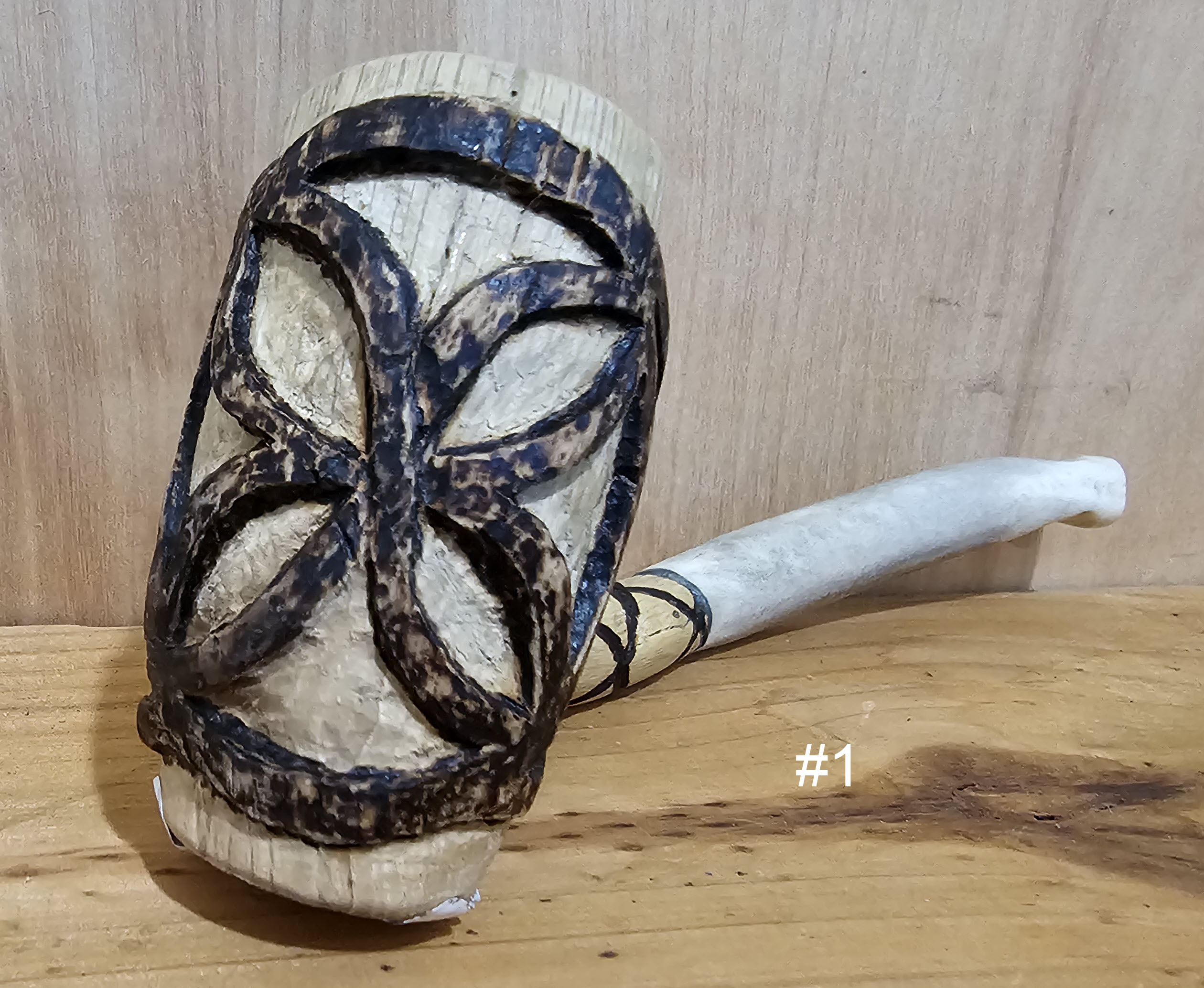 Hand carved from oak. These pipes are for ceremonial smudge smoking.