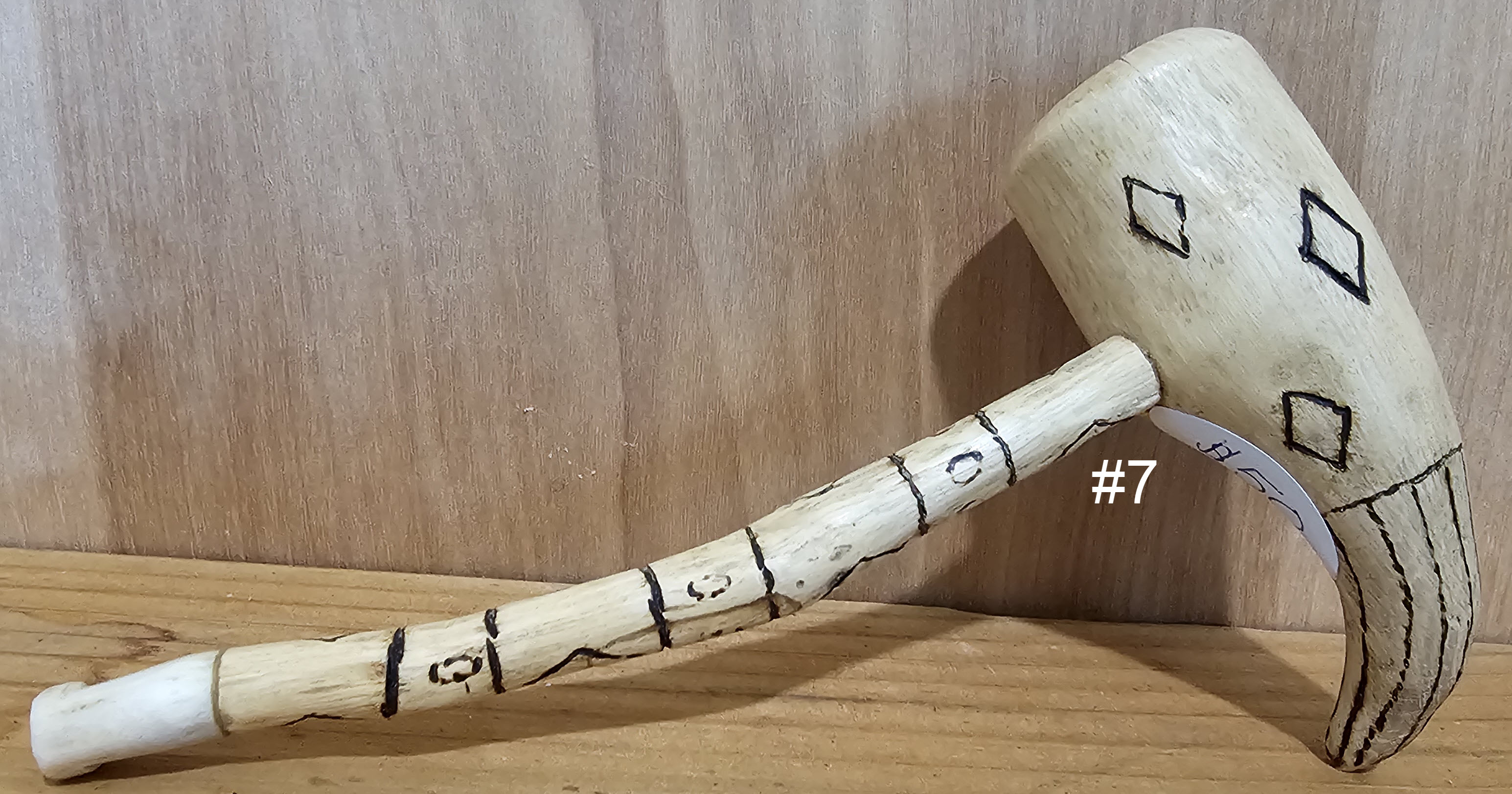 Hand carved out of Oak and the tips are shaped from deer antler.