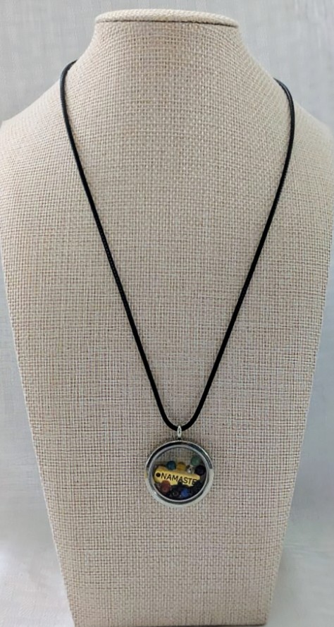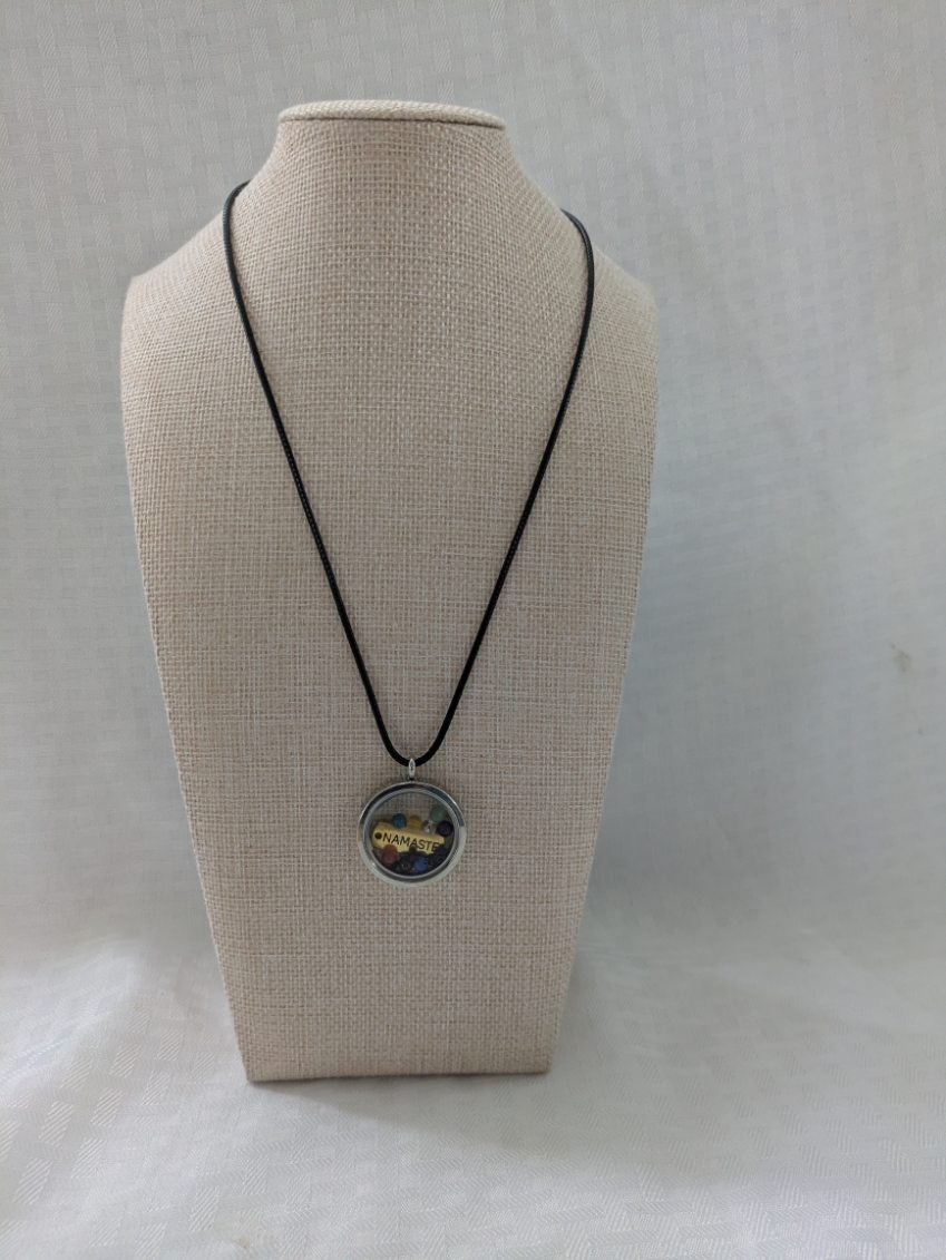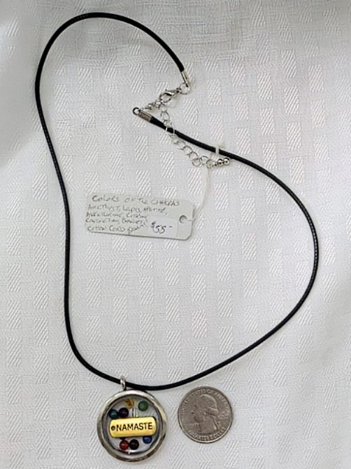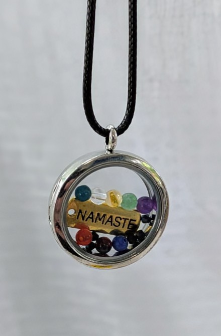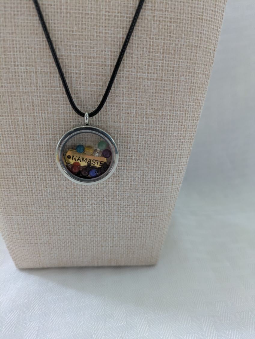 Colors of the Chakras Necklace. A creative display of the body's energy centers inside a glass locket.