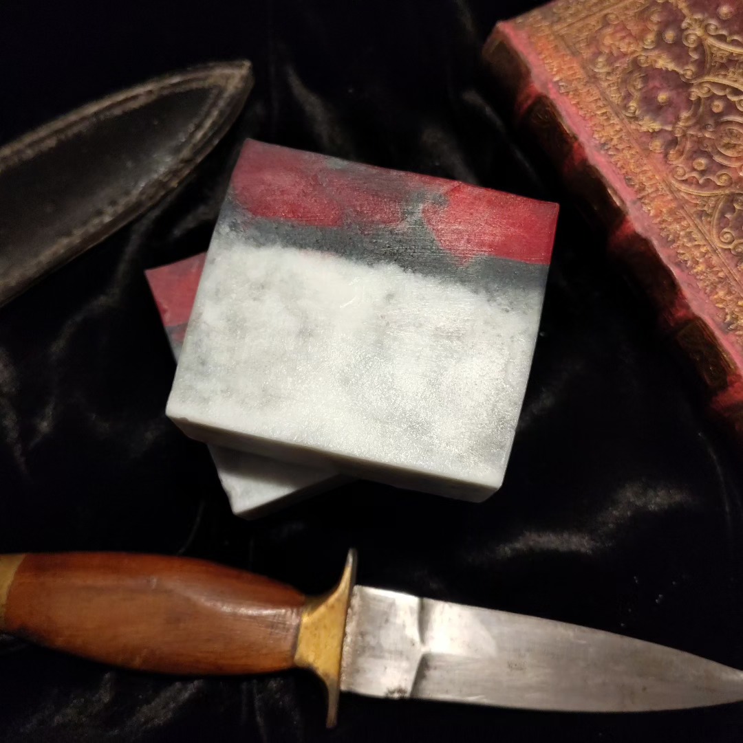 This soap is inspired by Eddie Munson from Stranger Things! Eddie is the town's outcast due to his taste in style and involvement in the Hellfire Club. But he would lay his life down for his friends. This soap gives a sense of his journey through the Upside Down to save Max and avenge Chrissy.