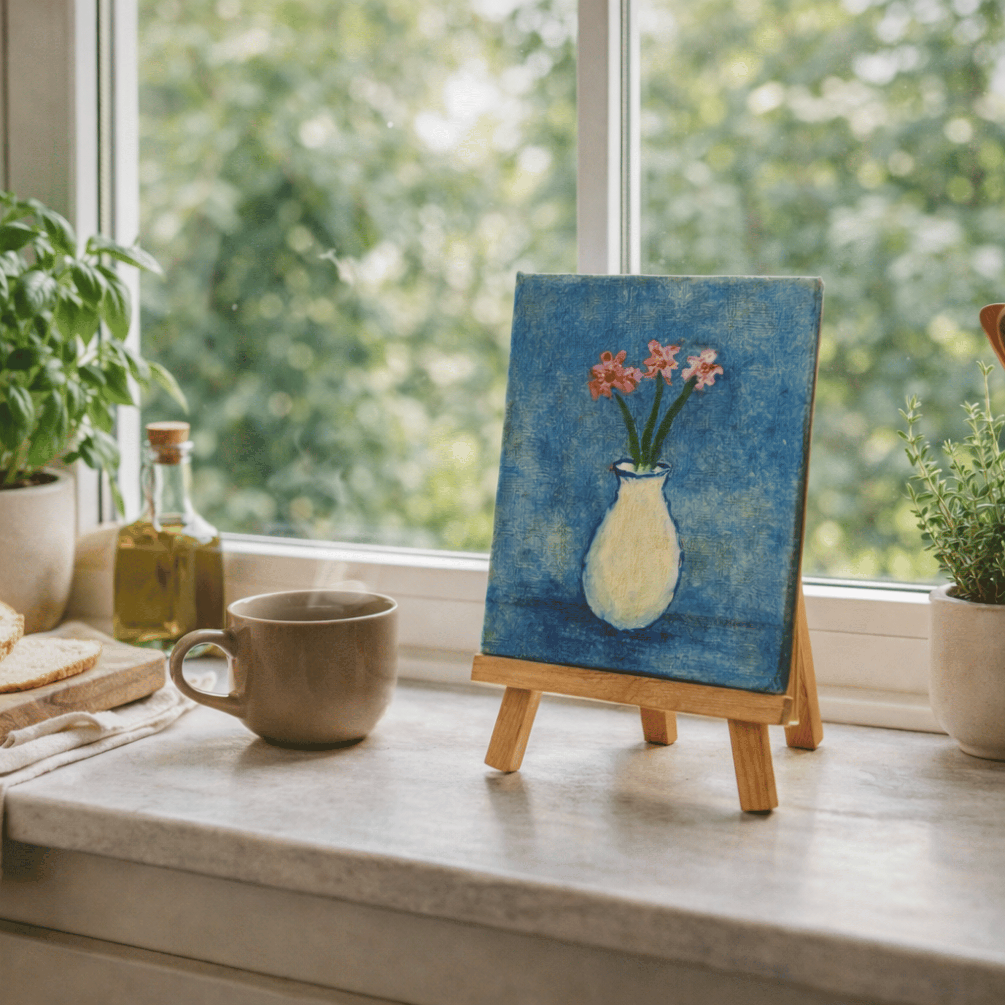 Flowers in a White Vase – Mini Acrylic Painting on Canvas Board with Wooden Easel