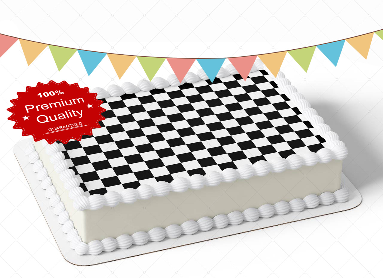 Checkerboard Racing Flag Checkered Edible Image Themed Edible Birthday Party Cake Topper Sheet Edible Sticker Decal
